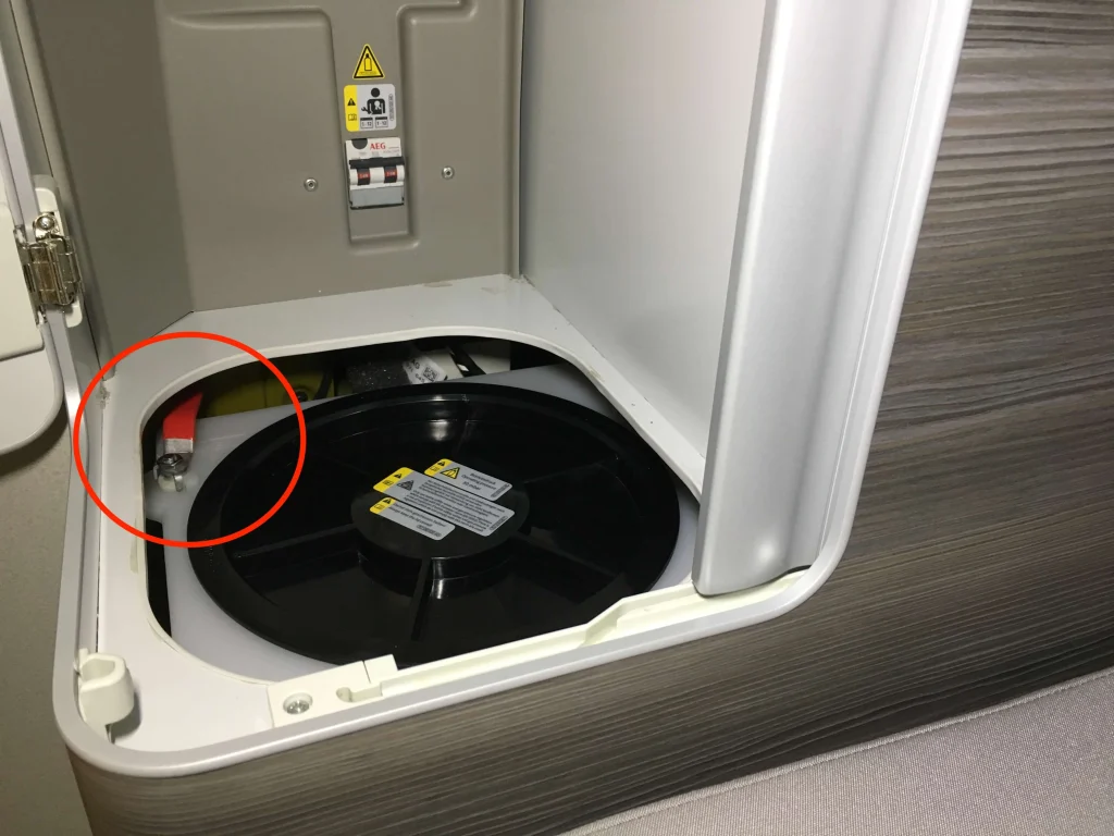 Om bevriezing te voorkomen kunt u het beste de schoon- en vuilwatertank aftappen. De schoonwatertank laat u leeglopen door de rode hendel in de kast achterin open te draaien. Voor de vuilwatertank draait u aan de rode hendel in het linker keukenkastje. Daarna laat u de keukenkraan open staan. Maak vervolgens de stekker van deze kraan los. De stekker vindt u onder de ronde deksel in de hangkast.
