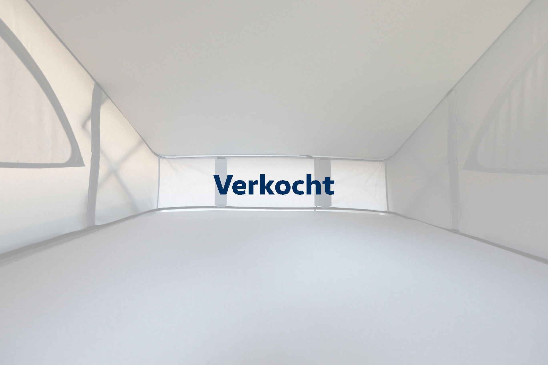 2 Stoelen in de achterklep Reservewiel Buitentafel Keuken met kooktoestel, wasbak en koelbox Extra hor in tentdoek