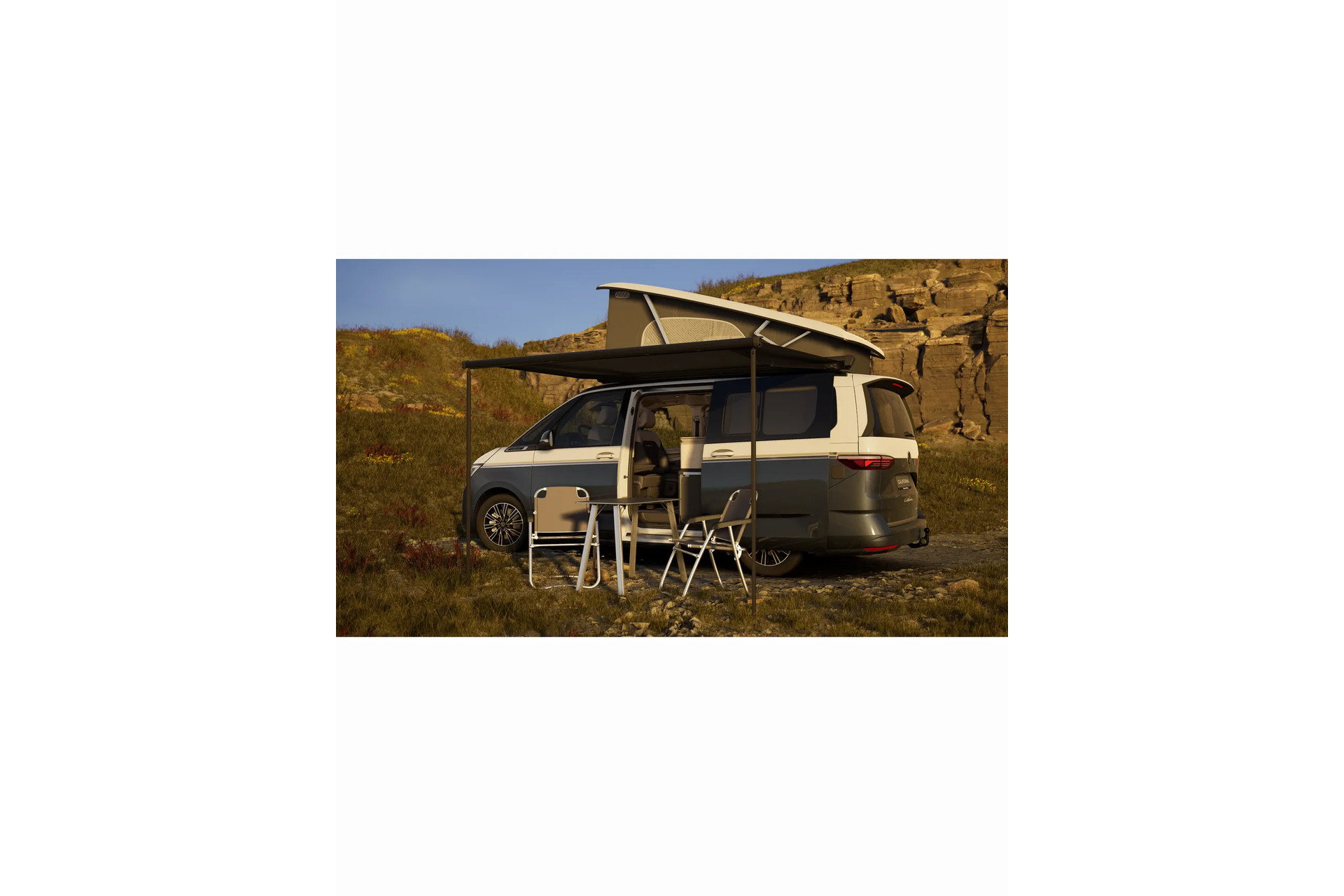 2 Stoelen in de achterklep Buitentafel Keuken met kooktoestel, wasbak en koelbox Fabrieksgarantie Extra hor in tentdoek