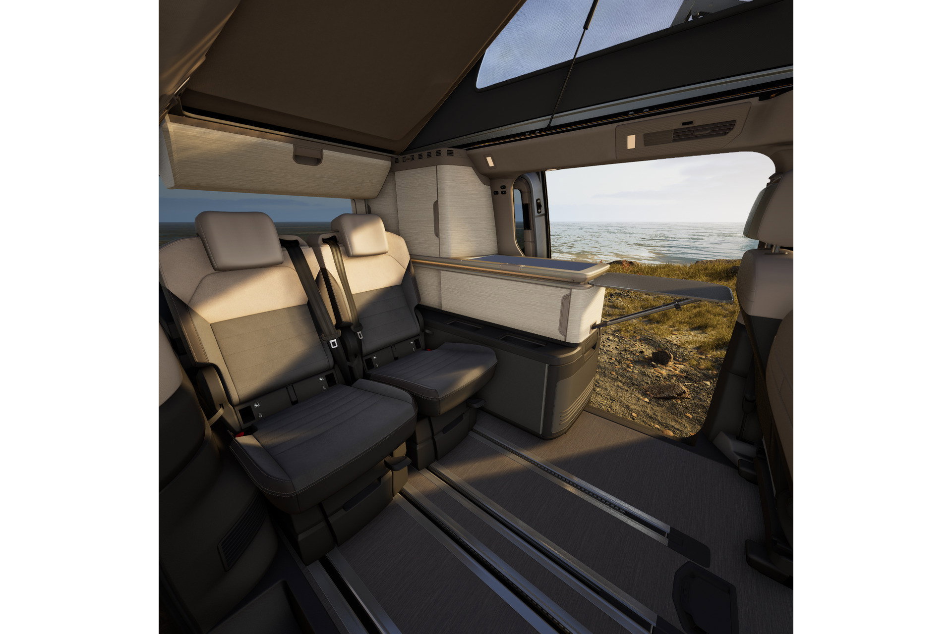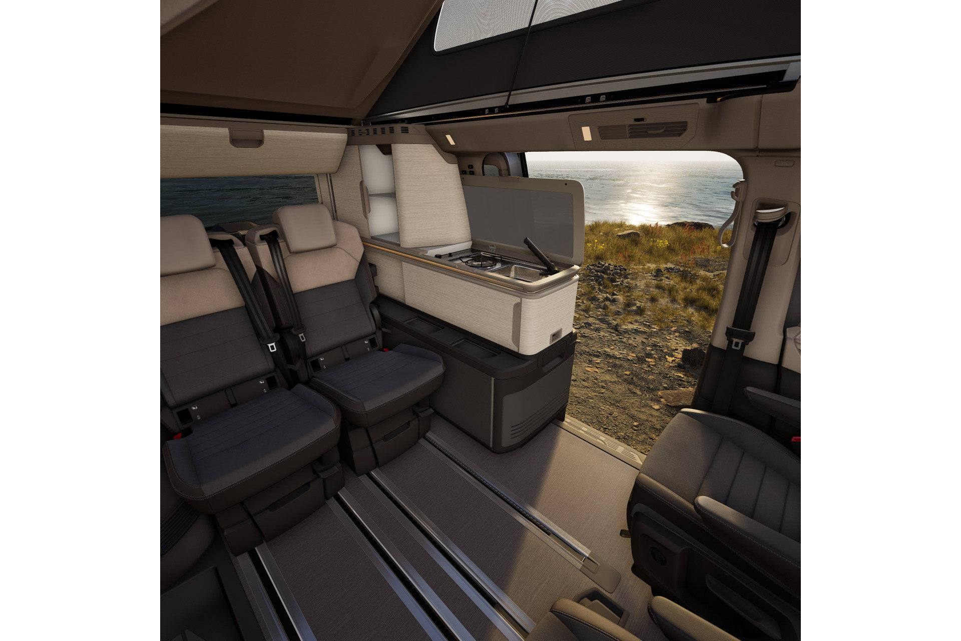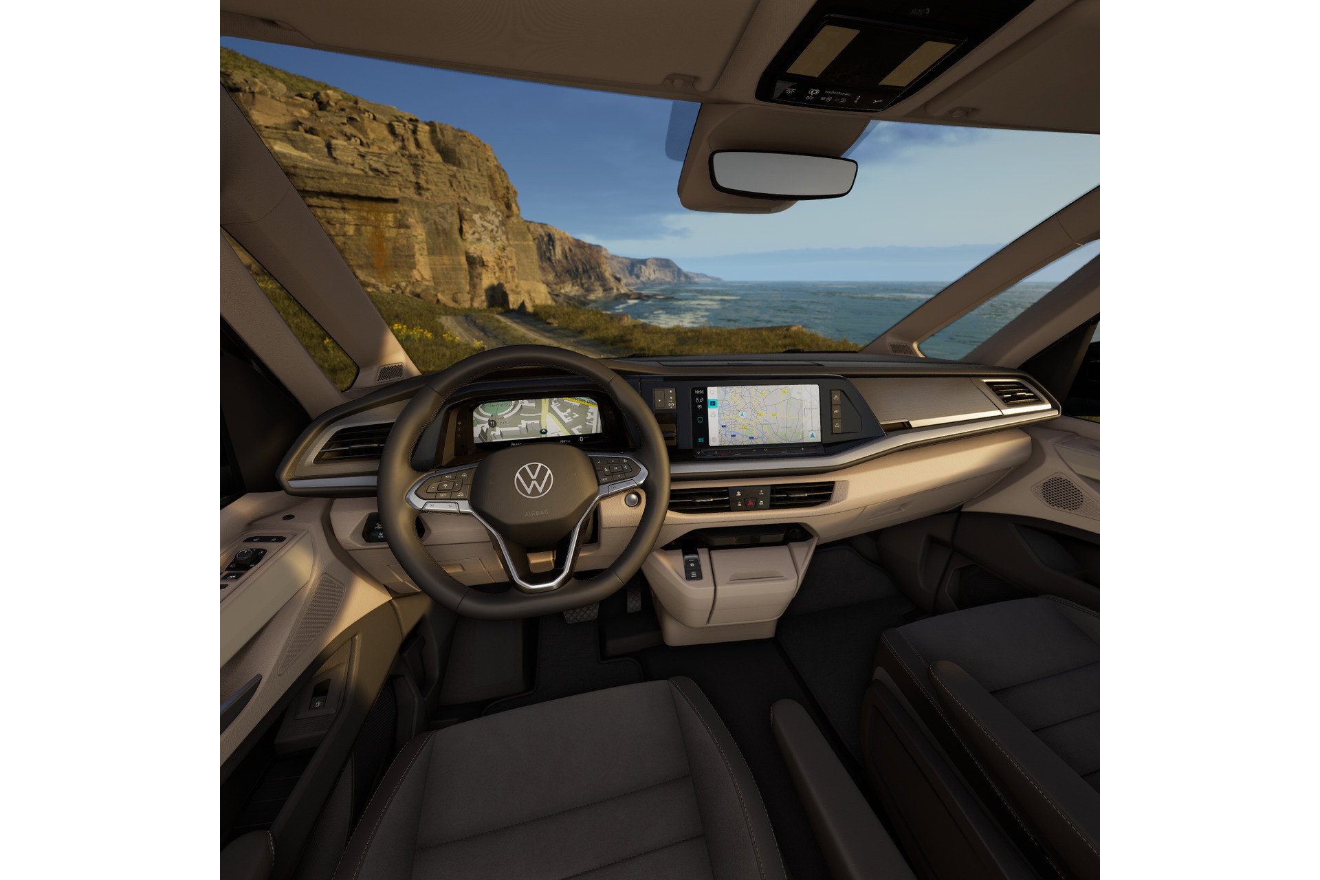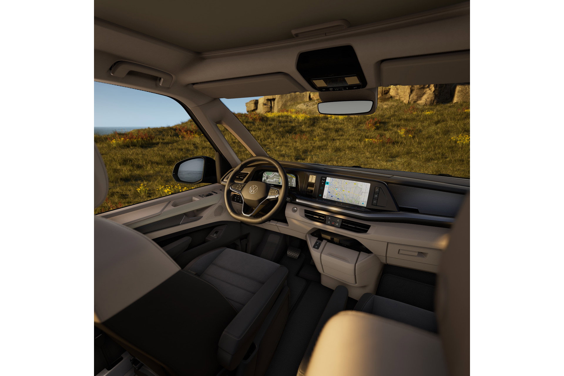Binnentafel Stoelverwarming Beide voorstoelen draaibaar met armleuningen LED binnenverlichting Head-up display Versterkte kunststof vloerbedekking in houtlook Airconditioning Standkachel Bi Colour stoelbekleding in Art Velours LED verlichting in dakframe Rijprofielkeuze Multifunctioneel stuurwiel met schakelpeddels, verwarmbaar Climatronic